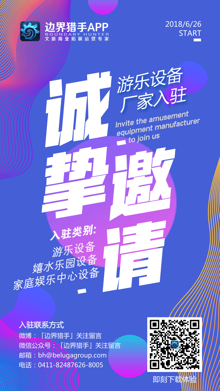 为了满足用户日益增长的产品需求,边界为用户提供更新更全面的游乐设备,BH pro开通了设备厂家入驻到APP中的功能,进一步优化APP中的设备产品结构,欢迎广大优质的设备厂家积极申请入驻。