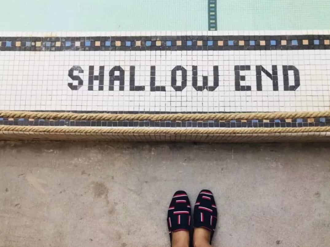站在拥有彩色马赛克地坪的泳池边俯瞰湛蓝碧波,与马赛克拼出的“Shallow End”拍照留念。这个夏天,需要偷点时光放松一下。