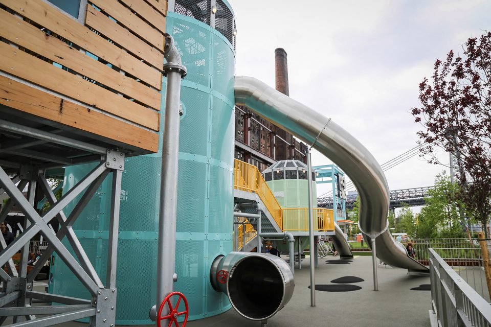 阅读 · 发布日期 2018-08-23 11:21 · 边界小边威廉斯堡里新建的多米诺公园里有纽约最吸睛且最创新的游乐场之一,由著名艺术家Mark Reigelman设计的多米诺公园游乐场。人们通常称多米诺游乐园为Sweetwater。为了向多米诺糖厂和其制糖历史致敬,孩子们可通过的游乐场的每一个部分,都代表着制糖过程中的一环。这些游乐场里的小家伙们可以在他们的游乐场之旅里爬坡,在管道,传送带和弹射滑梯之间穿梭。