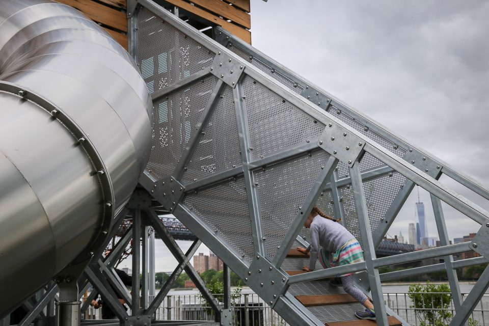 纽约最新的海滨休闲公共空间,就是多米诺公园游乐场,通常人们称之为Sweetwater。多米诺公园游乐场可供公园游客使用,同时作为公园的最高点,在这儿还能欣赏到曼哈顿天际线,威廉斯堡大桥,曼哈顿大桥,以及其他多米诺公园周边的无与伦比的美景。设计时在颜色,形态,材料和布局方面都受到了多米诺制糖厂的影响,创造了一个能满足城市探索和好奇心的空间。