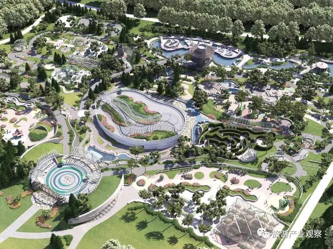入口广场设计为足够容纳200人的互动喷泉广场,人对水有天生的亲近感,小朋友们玩得更是不亦乐乎!此外还有带遮阳的圆形剧场,而入口大门整体设计朴素简单,以铁艺为主,提取树叶和蝴蝶等元素来装饰,顶部以一个飘带形式铁艺贯穿,与公园logo巧妙结合,采用对称的形式。