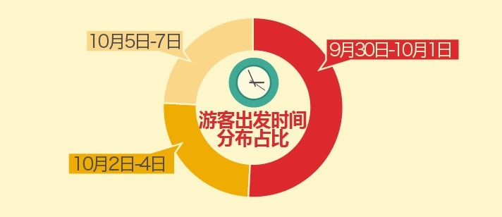 在出游时间分布上,节前一天(9月30日)及假期第一天(10月1日)出发的游客人次最多,占比为51%,而10月2日-4日客流量相对平稳,出游人次占比为25%。同时,为了避开高峰期客流,以及考虑到旅游产品性价比,部分游客将出游日期延后,选择在10月5日-7日之间出行,出游人次占比也达到24%。