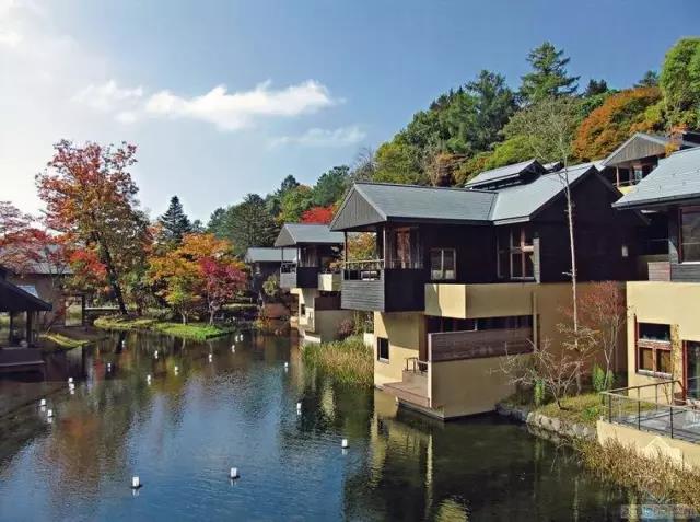 所有度假屋均为和式建筑,用黏土墙壁风格的坚实外观加上黑色的木板结构,依山傍水,颇有禅宗的意境。